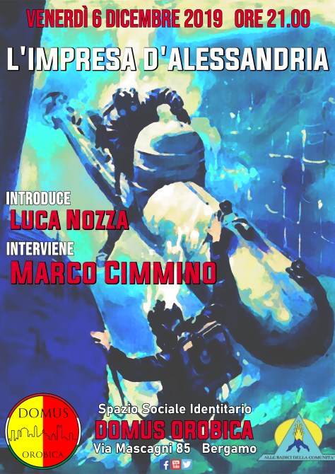 Iniziamo venerdì 6 dicembre alle ore 21 con lo storico bergamasco Marco Cimmino che ci racconterà dell’impresa d’Alessandria d’Egitto della la notte tra il 18 e il 19 dicembre 1941, quando sei palombari della regia marina misero in atto la più famosa e spettacolare beffa della Xª Flottiglia MAS.