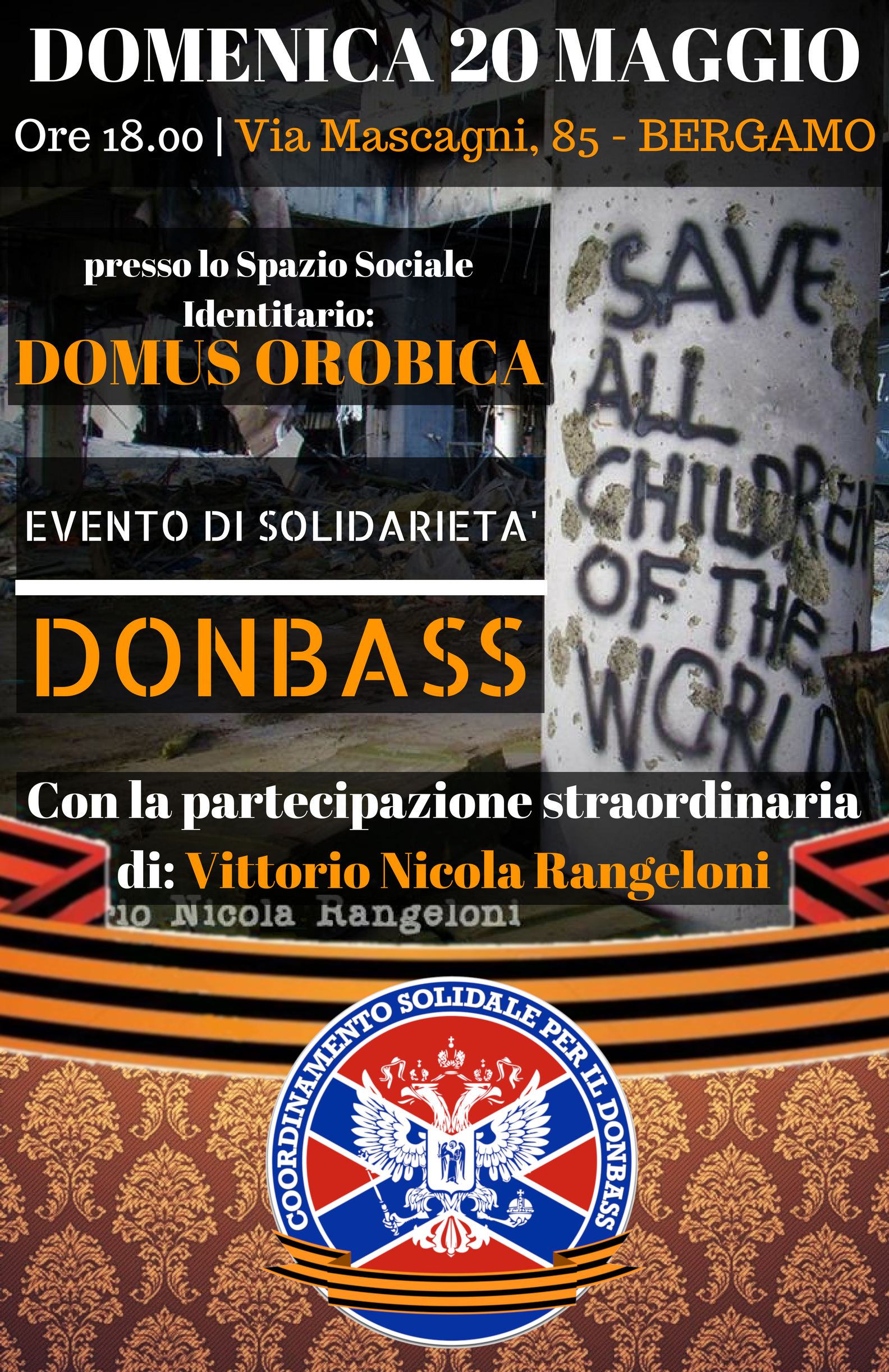 Domus Orobica è orgogliosa di invitarvi ad una serata solidale, organizzata in collaborazione con il Coordinamento Solidale per il Donbass, di raccolta fondi in aiuto delle popolazioni del Donbass.